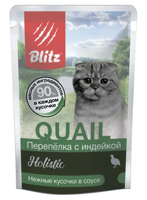 BLITZ SHRIMP HOLISTIC паучи для кошек Блитз Холистик (Перепелка и индейка) 85г