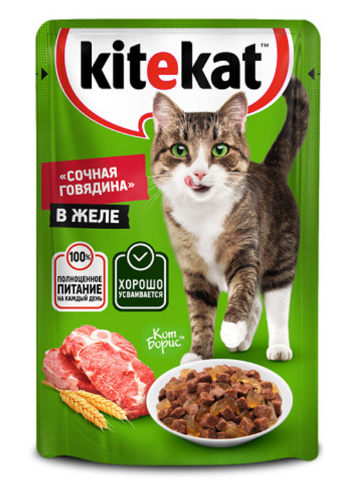 Kitekat (говядина) в желе 85г