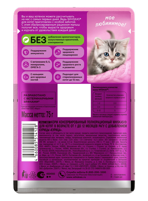 Whiskas для котят 85г (Рагу, Курица)