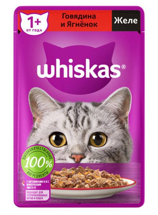 Whiskas жидкие 75г (Желе, Говядина ягненок)
