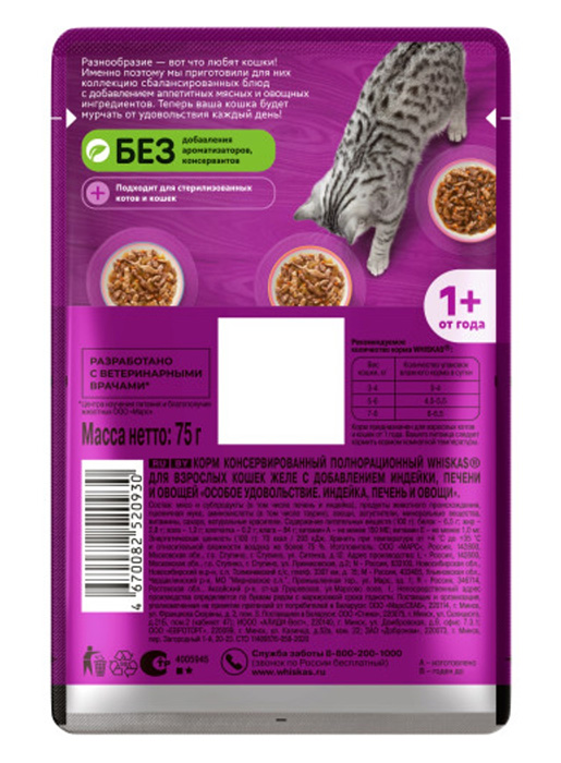 Whiskas жидкие 75г (Желе, Индейка печень и овощи)