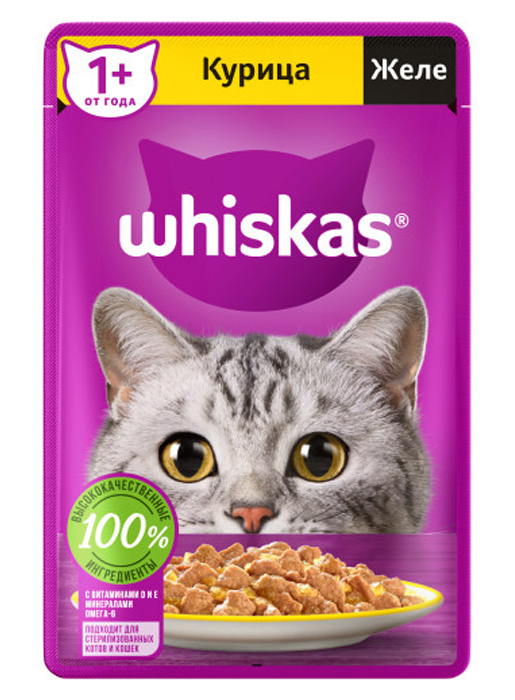 Whiskas жидкие 85г (Для котят, Желе Курица)