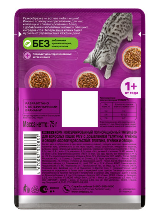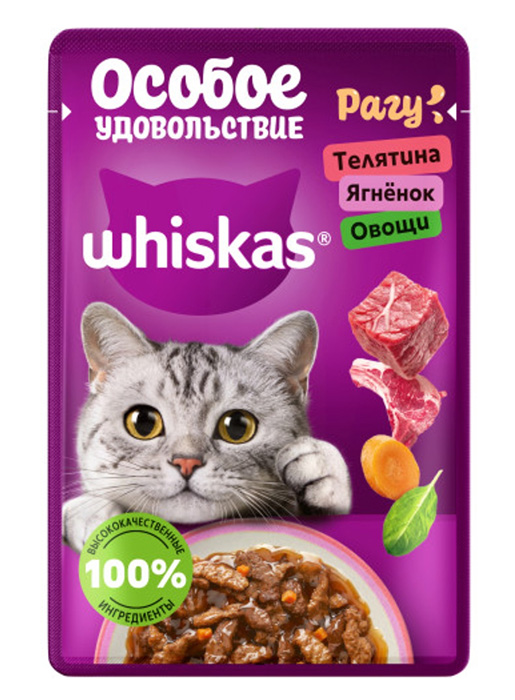 Whiskas жидкие 75г (Рагу, Телятина Ягненок и овощи)