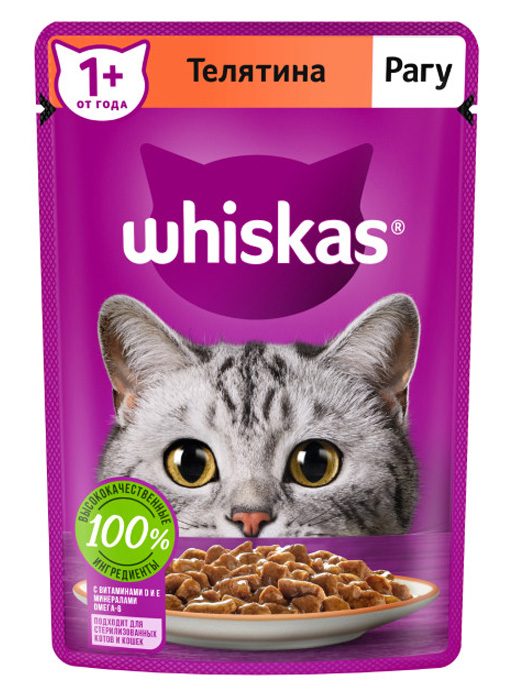 Whiskas жидкие 75г (Рагу, Телятина и Язык)