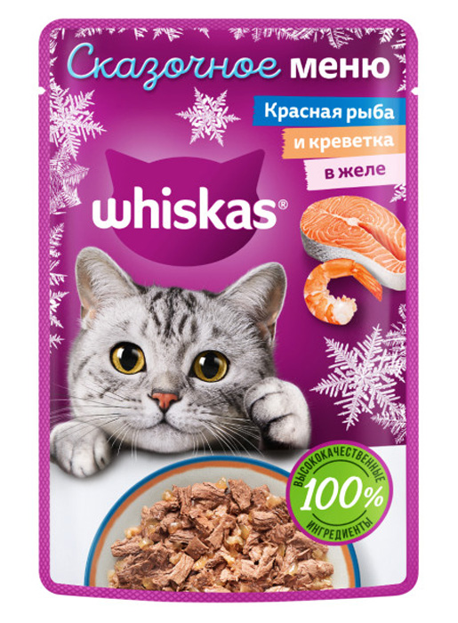 Whiskas паучи сказочное меню (Красная рыба и креветки в желе)75г
