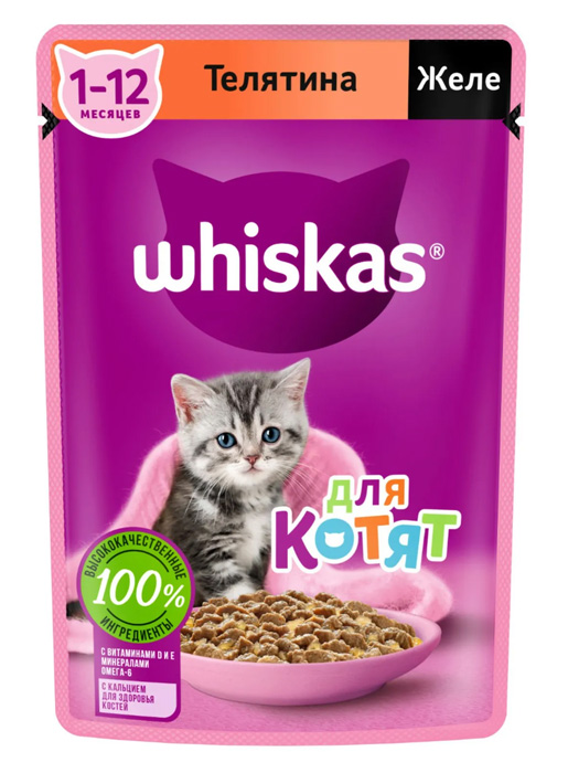 Whiskas жидкие 85г (Для котят, Желе Курица)