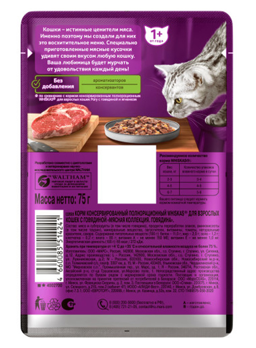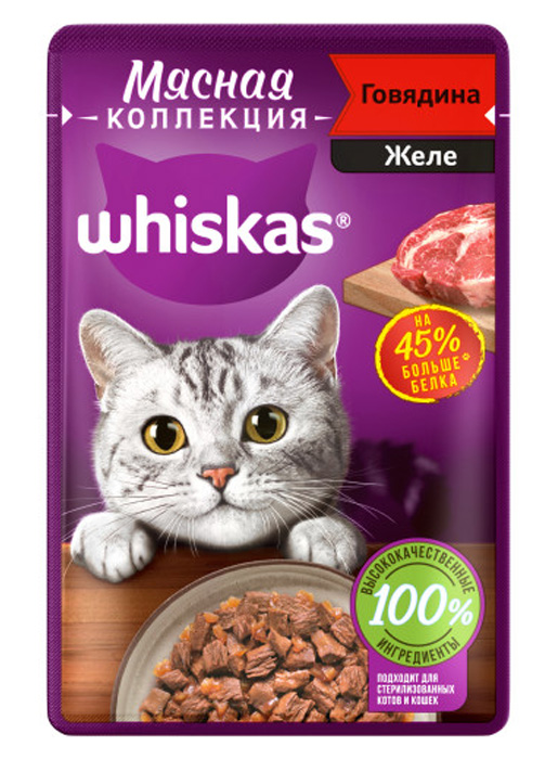 Whiskas (Мясная коллекция, Говядина) в желе 75г